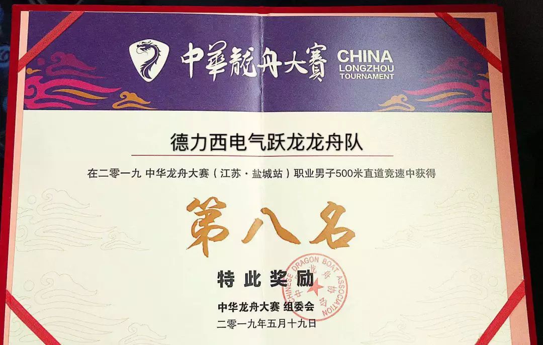 5月20日,中华龙舟大赛(江苏盐城站)正式落下帷幕。德力西电气赞助的跃龙龙舟队在此次盛会中再次发扬了精诚团结、永争上游的龙舟精神,夺得男子精英100米直道赛决赛第二名、男子精英200米直道赛决赛第五名以及男子精英500米直道赛决赛第四的优异成绩 ,喜迎即将到来的端午佳节。